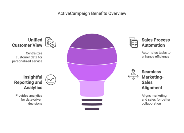- Unified Customer View: ActiveCampaign's CRM centralizes all customer interactions, purchase history, and engagement data in one place. This comprehensive view enables your team to provide personalized service at every touchpoint, strengthening customer relationships and increasing retention rates.